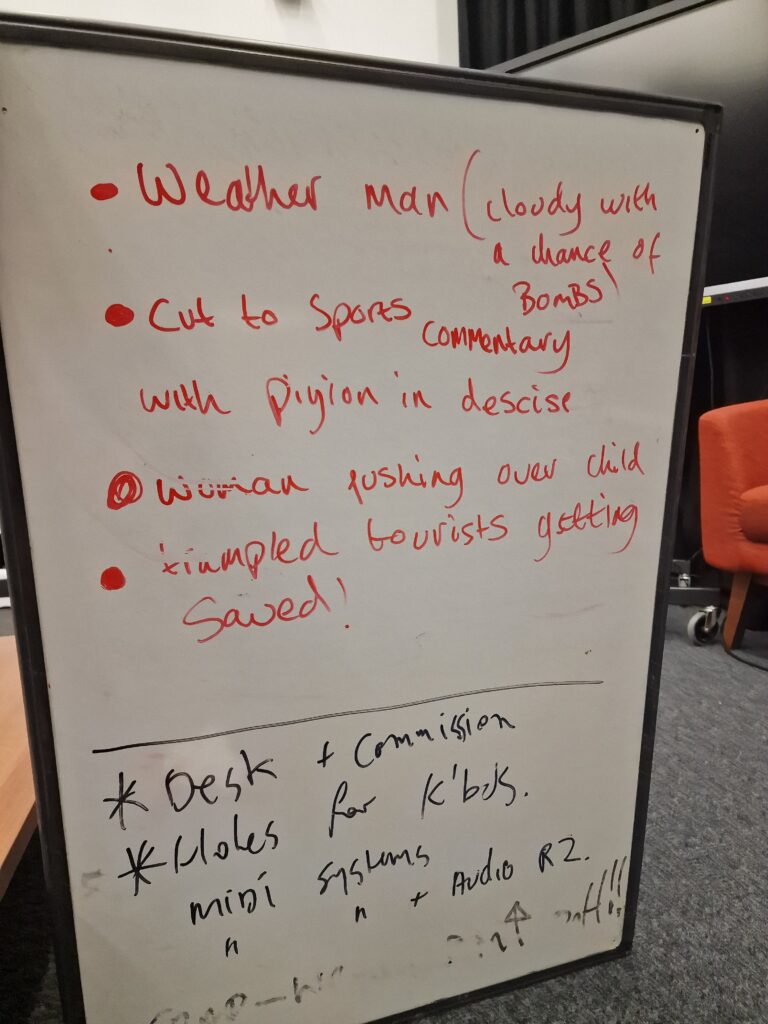 We came up with many different types of scenes that we thought would fit the narrative of World War 2 in the them of horrible histories, ration chef, blackout scene, party scene, the hospital scene, guard scene, party scene, border control scene. We had decided against using a few of the scenes that we had devised due to logistical, or issues from a filming point of view.