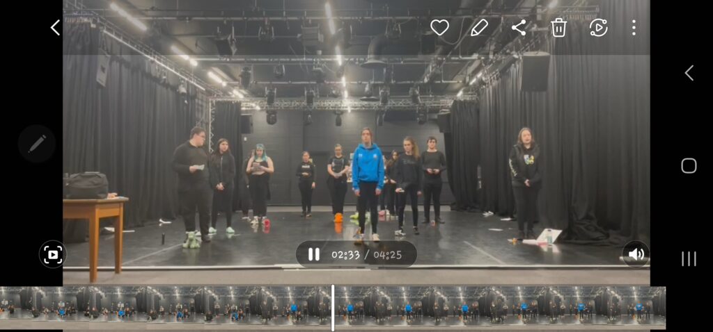 Today i think that I had good confidence and focus. I think I did well working as a team with others and ensuring that other cast members were ok and knew what they were doing