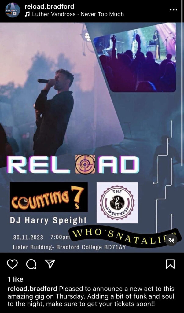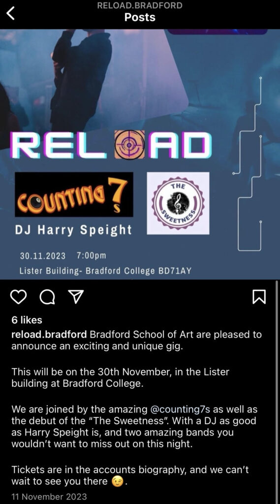 I will be the social media manager for this gig. This means running all of the social media, which includes Instagram, TikTok, and YouTube. As the college is not already established as a venue and it is a one time gig, I will have to make the social media accounts. Usually you wouldn’t do this as a social media manager as it is usually established. I will have help from the events marketing team to create these social media posts.