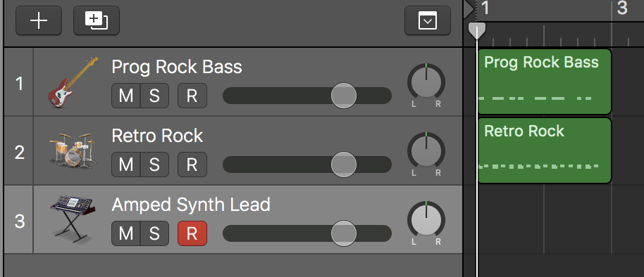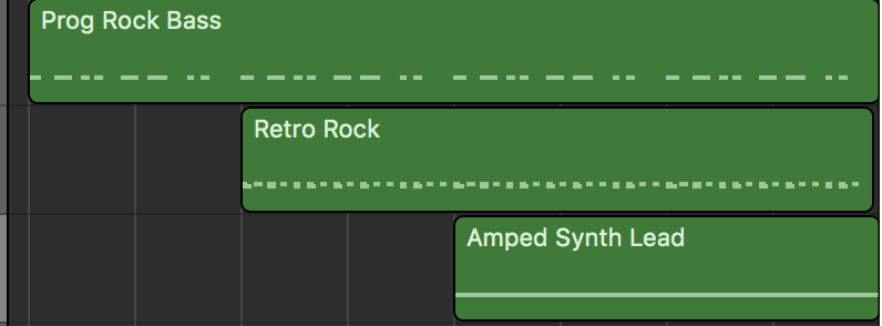 I created a simple bass line using the “Prog Rock Bass”, and drum beat that works with this bass line using the “Retro Rock” drum kit.