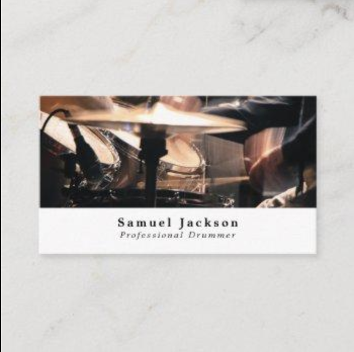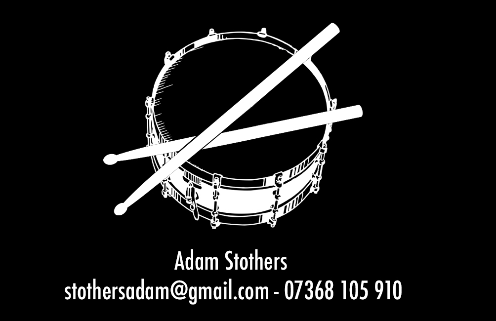 This is my favourite design out of the business cards I have come up with, with the help of my tutor Paul. We used photoshop to get this design. I got my inspiration from a lot of the business cards I researched. The vector of the drum sticks we added to a vector of a snare drum. The colours were also inverted. I also decided to have a double sided business card and have my details on the back and the image on the front. I also decided to have both the text and the image centred as I think it looks better. I also like the font, which is called Futura. There were a couple other ideas that I toyed with, such as having the colours the other way round (so not inverted), as well as using a different font and having the text on the same side as the image instead of it being double sided. This is probably going to be a prototype of the business card that I’m going to use later in life, as the design is really simple yet effective.
