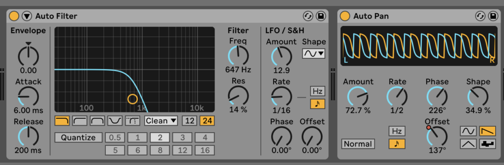 Ambient synth effects. I used a filter to cut off the high end sounds that weren’t needed, and an auto pan to make it bounce left and right. Compression would’ve been useful for this synth, as the volume of it is quite up and down.