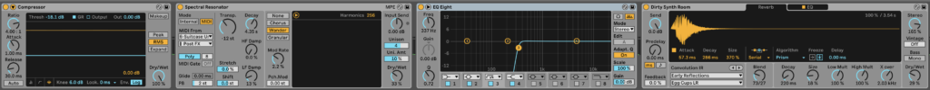 Keyboard effects. I used a compressor, an EQ, a reverb, and a spectral resonator. They all combine to make a nice sound.