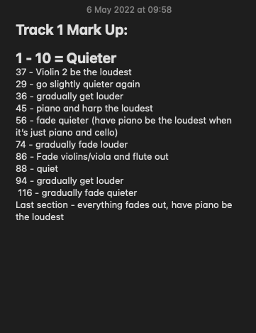 The cello is kind of a background instrument to add power to the piano. It follows the root chord of what the piano piece is following and remains pretty consistent throughout. The cello was the first stringed accompany I wrote for this track and it really does make the piece feel more powerful. The most dominant accompanying instrument is defiantly the violin. The violin drives the emotion and really cuts through the whole piece. Even though it’s only playing the staccato of what the piano is playing, it makes a huge difference and the track sounds empty without it. In the bridge part, when the violin plays a slightly differentiated version of what the piano is playing, you really follow the violin as it kind of guides you through the emotion of the piece, it’s very powerful, I feel. Again, the strings really made the motif more memorable but also more emotional.