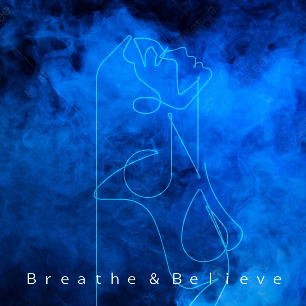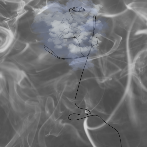 Cover art for track 1. I think blue compliments this track because I always associate blue with breathing. Blue is really calm and I think this track is very calm. First we put in the background, the smoke, then we added in the women and blended her in so that she turned blue.
