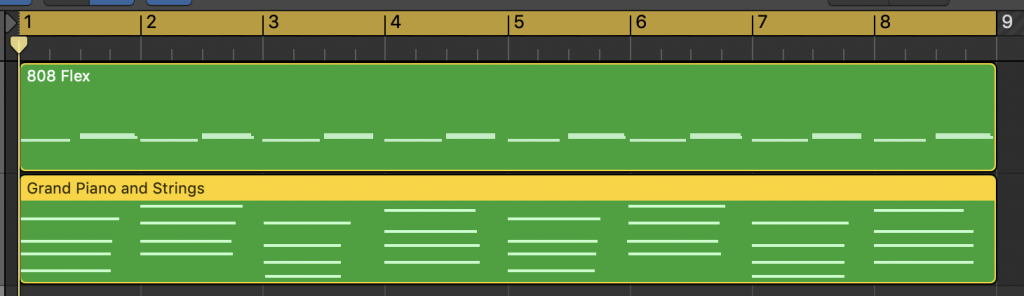 Then, I added in some piano chords, because a lot of Pop songs have piano playing as their main melody and I quite liked that idea too. However, when I added in the piano, it made the beat and the piano sound out of time so I needed to quantise them to 1/8ths and then change the lengths so that everything sounded in time and stopped sounding messy. The chords I chose were all in the key of C major and I chose 4, 6, 3 and 5, which isn’t a typical pattern but it is in a typical key for pop music.