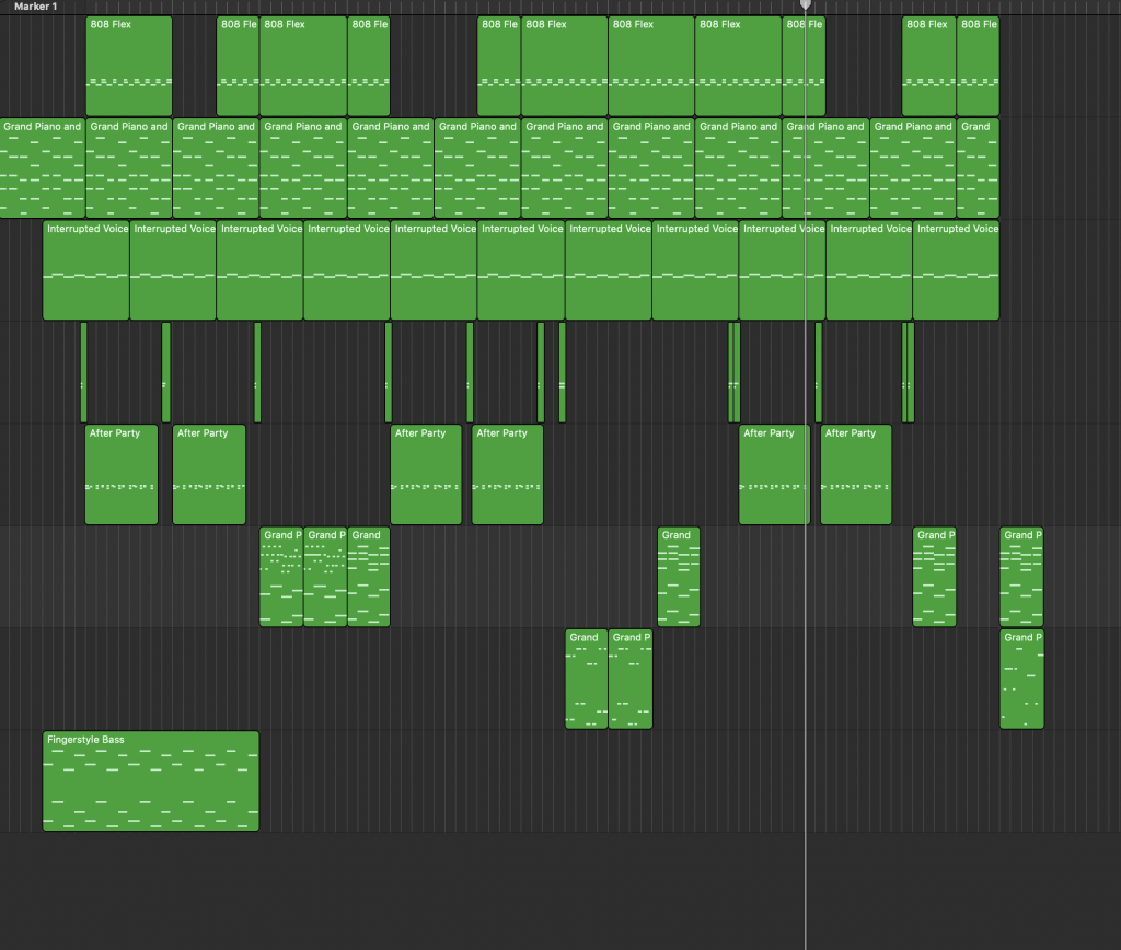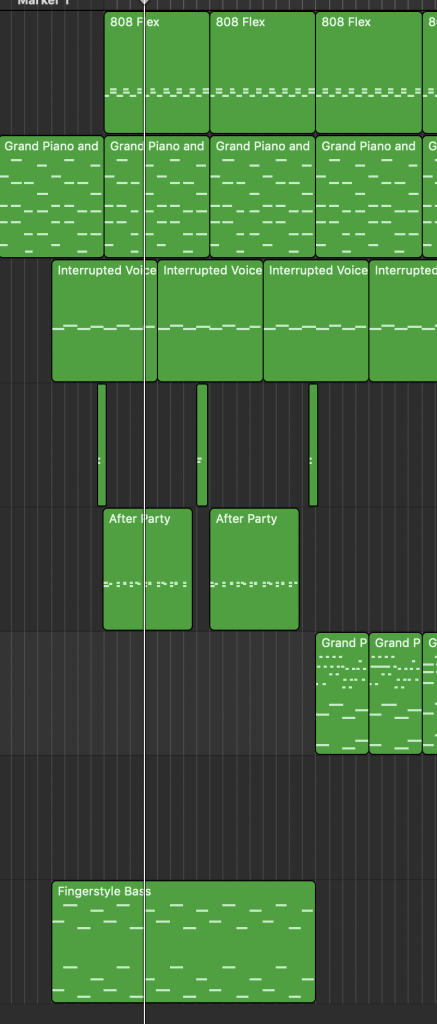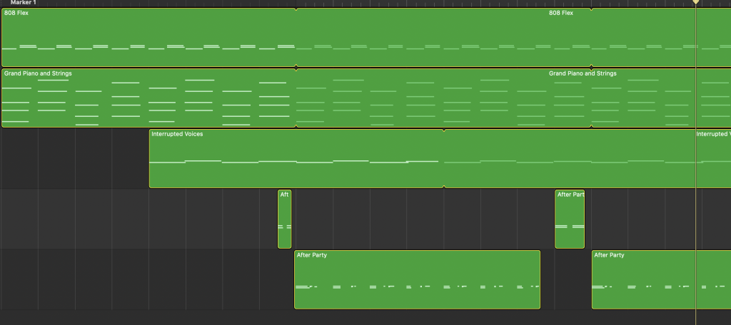 This is where I held down each chord for 2 bars, except on the last one I added in the starting of the beat again so I could loop back to the verse again.