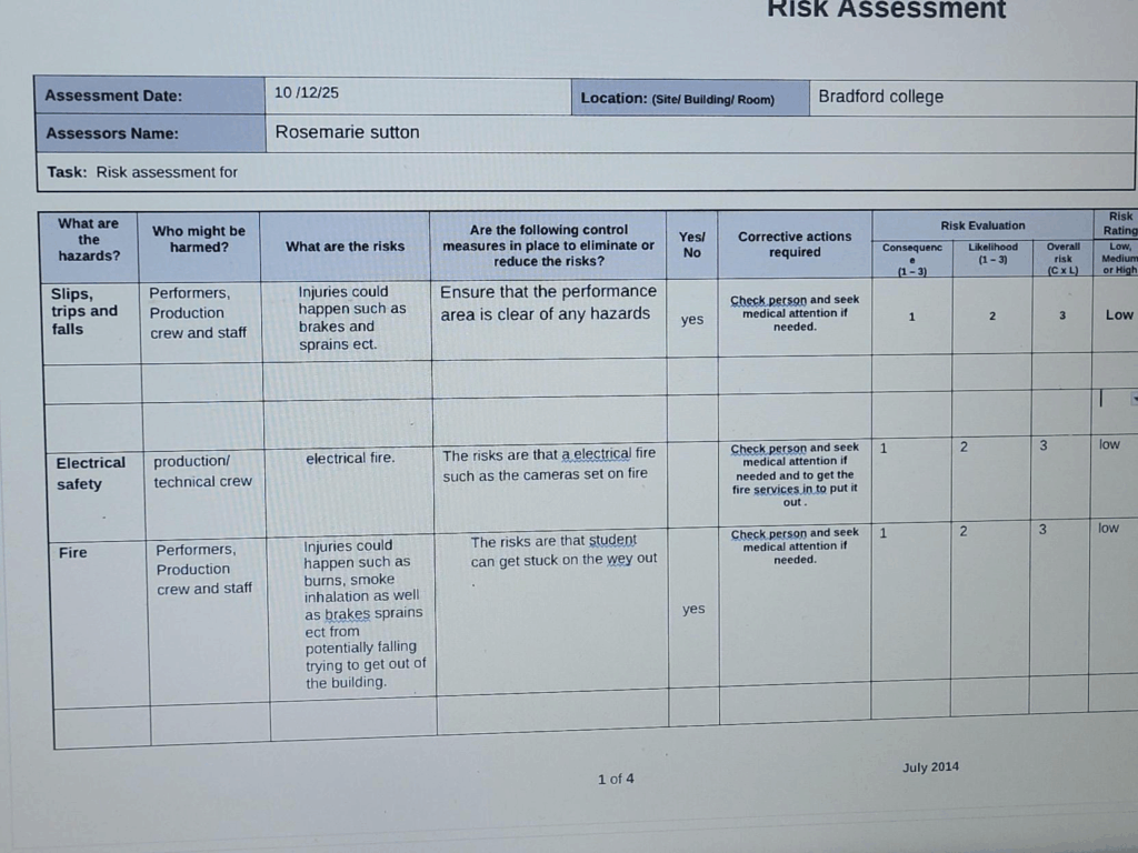 in these pictures are ideas of what we can use form the scripts that we could use for our blackout scene that we devised after.
