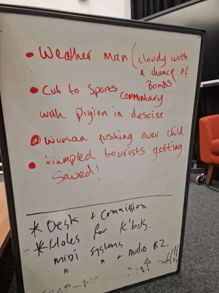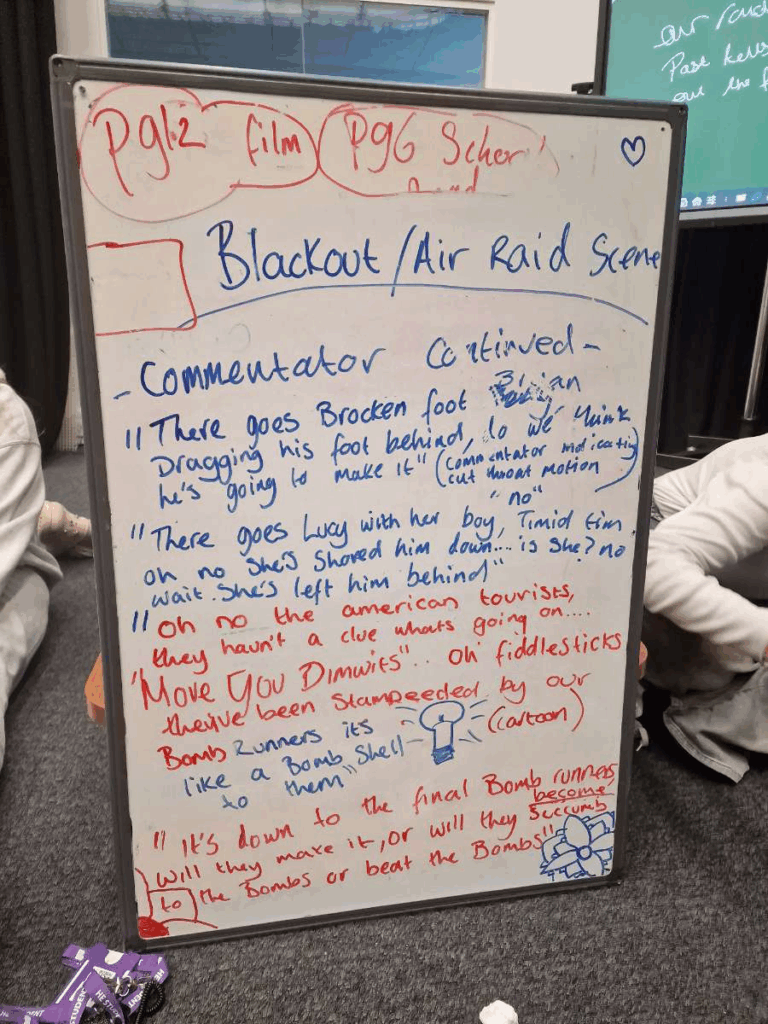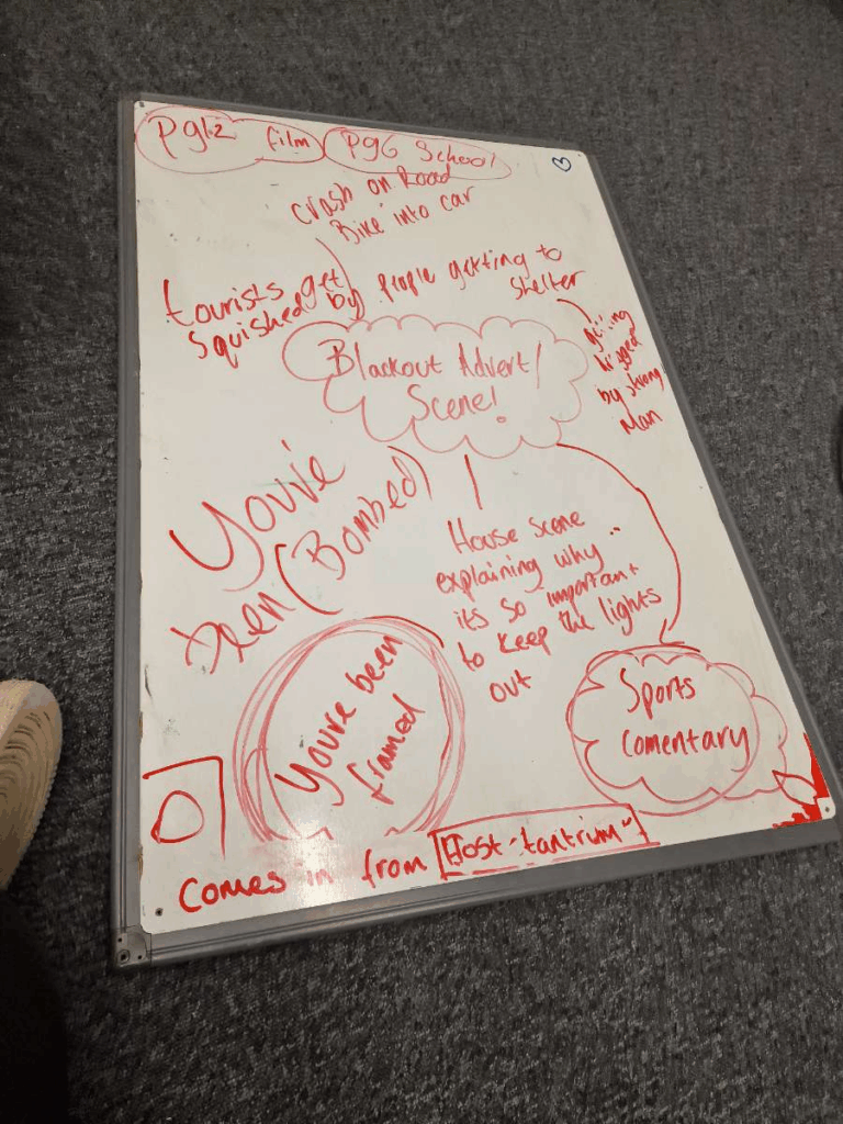 in these pictures are ideas of what we can use form the scripts that we could use for our blackout scene that we devised after.