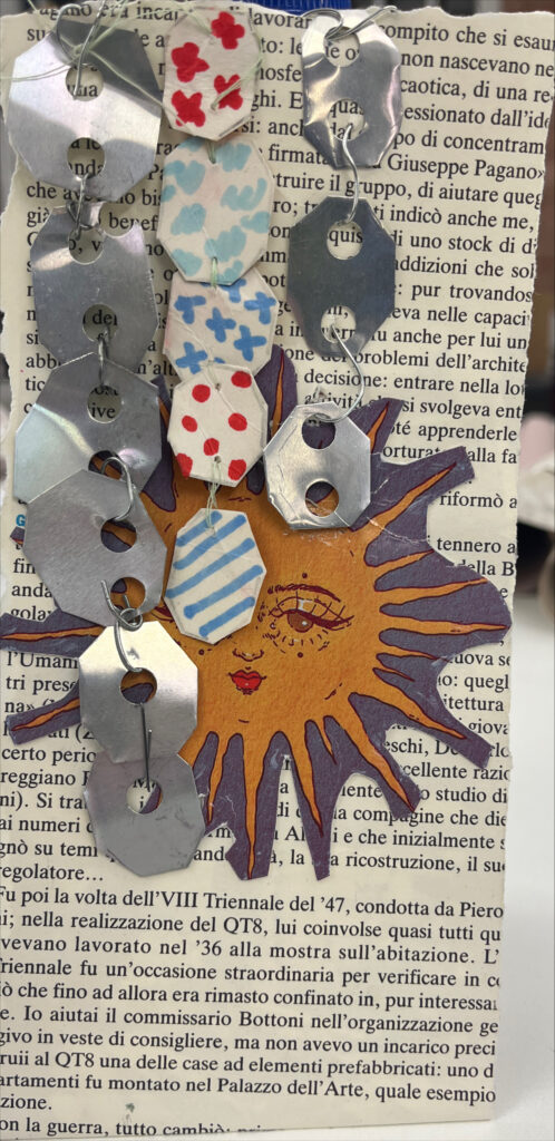 For this I used different ways of connecting the shapes of both cardboard and aluminium – these being with thread and copper wire.