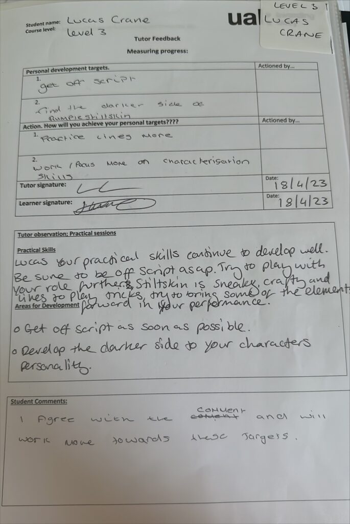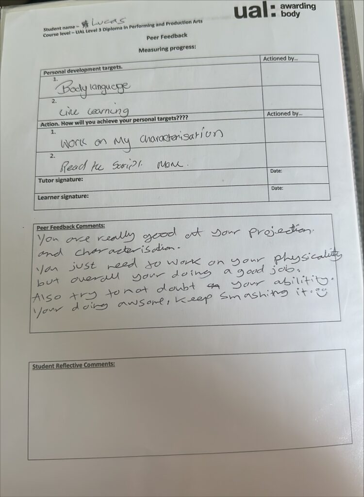 an aspiring actor at Bradford college