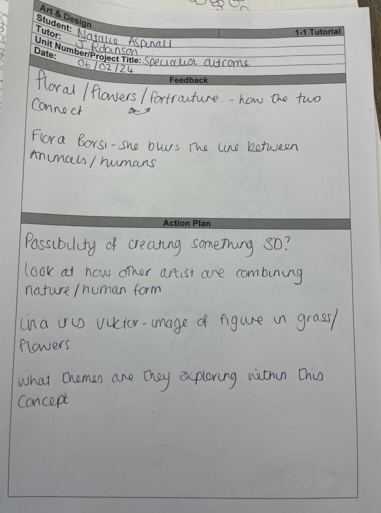 Because my specialist practice is mixed media and I like to draw animals , portraits and things from nature a ,I think these would be a good theme idea ( concealment, human form , nature)
