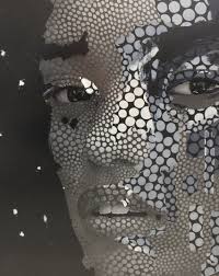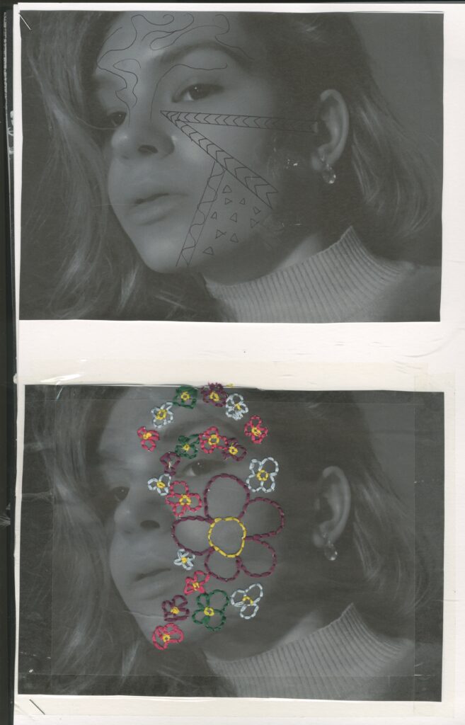 In response to Alana Dee Haynes’s style of art , I decided to take a picture of myself in black and white with my phone, then I took a black pen and drew some random quick shapes in a similar way to Haynes . Then I decided to develop this further and researched another artist called Maurizio Anzeri who in a similar way to Haynes , creates work on top of a found portrait however he useless embroidery on vintage portraits.