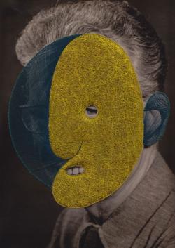 Maurizio Anzeri makes his portraits by sewing directly into found vintage photographs. His embroidered patterns garnish the figures like the elaborate costumes, but suggest a psychological aura, as if revealing the person’s thoughts or feelings.