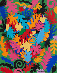 In response to Matisse’s art I made some prints of flowers using collographs and prints by dipping a flower in acrylic paint and stamping them onto paper. I like how Matisse uses bright colours which I tried to replicate that in my own prints. I like how I can see shapes that look like leaves this is because it has relevance to my project. I also like the abstract style and it’s not obvious what the artist is trying to convey.
