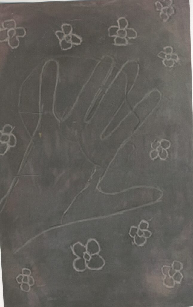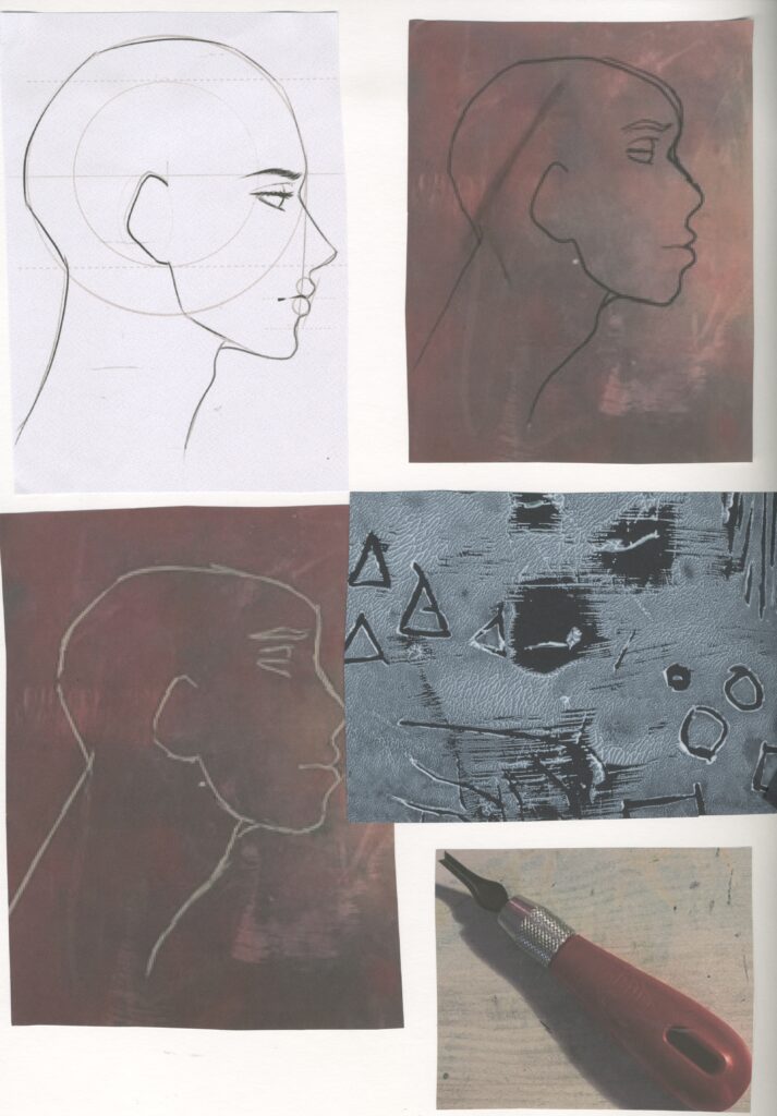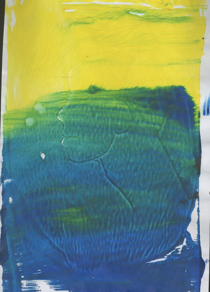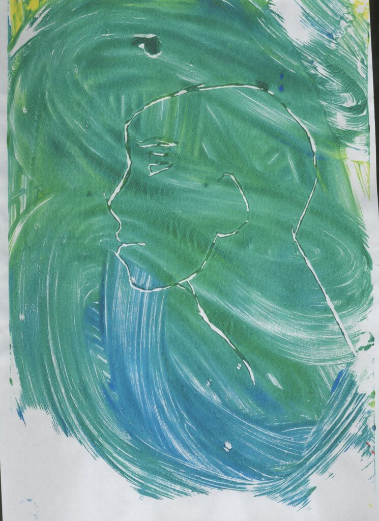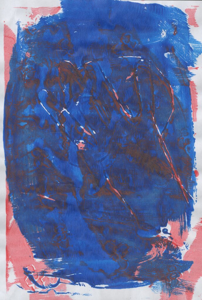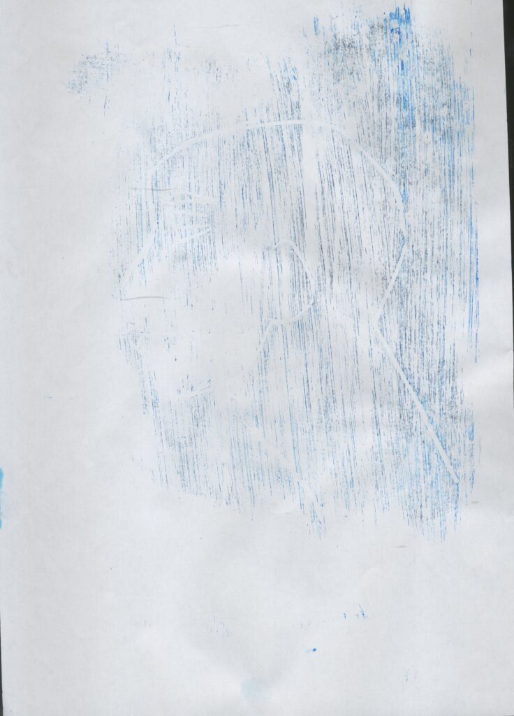 Then I made some prints of a series of 3 similar prints using less and less paint. This was very successful and I like how these came out even the final one. This is because on this one I used the least amount of paint making it a Ghost print. I didn’t think that this was going to work because of how little paint I used but it ended up working quite well even though it is a bit difficult to see but it is if you look closely at it.
