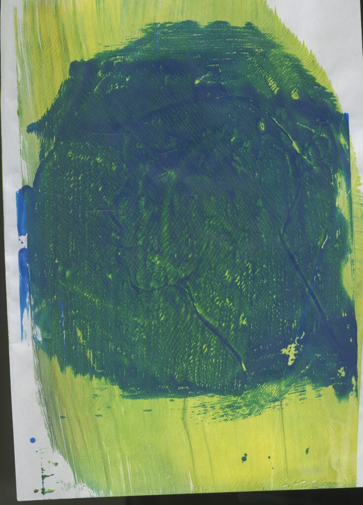 I then decided to use blue and green paint and swirled them together to sort of achieve a marbled effect. This was more successful than the first image because in the first image I can see more areas of white and finger prints from where I was printing.