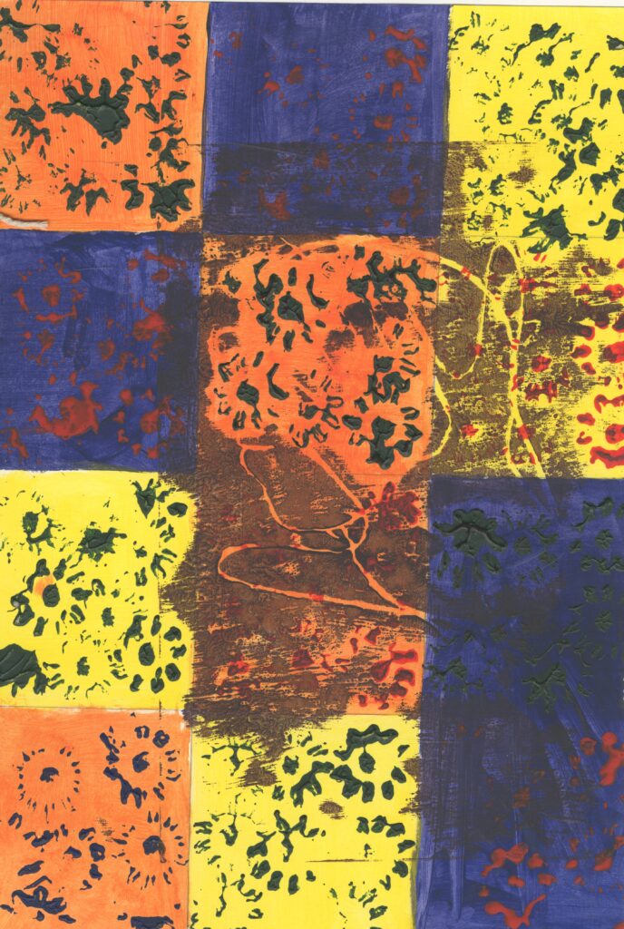 Then I tried to do a checkerboard pattern with different colours, however this was unsuccessful because I messed up painting it in this way. Also the flowers don’t look random and there is so many colours in it with make it look confusing .