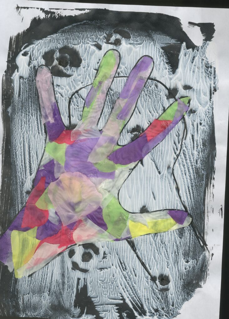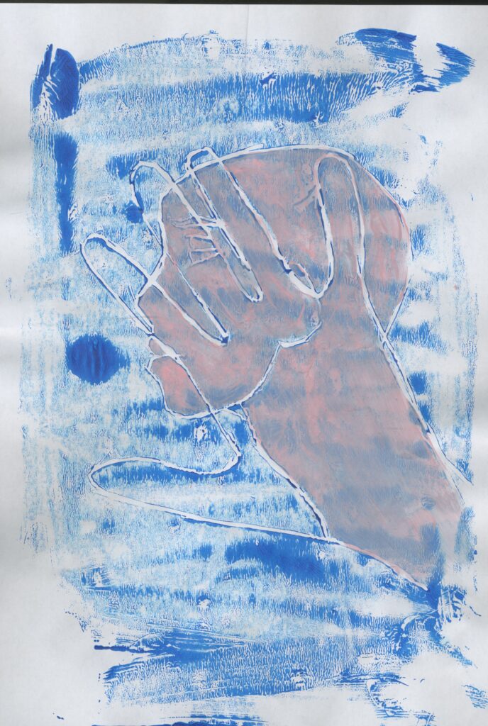 I have experimented with this shown in the image above, I have used some fake flower petals to collage with over the hand instead of the fave and used black and white paint to print with as well as mono printed with fake flowers on top. My favourite part of this was the mono print flowers. I think for future ideas I’m going to incorporate that idea into my tests. This also reminds me of the flower prints with I made earlier on in the project.