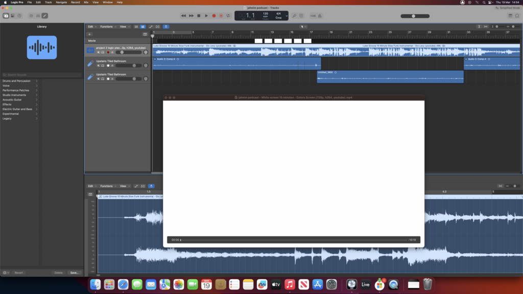 So what I did was I went on YouTube and I found a 10-minute white screen video that was just a blank background. I downloaded it using a safe online tool, and then I imported that video into Logic. Once it was there, I trimmed it down to match the length of my podcast, and that’s how I got it all finished up and ready to go.