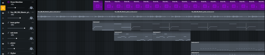 Songwriting Documentation first i started off with a sample vocal beat to add on to drum 1st bass 2nd bass piano