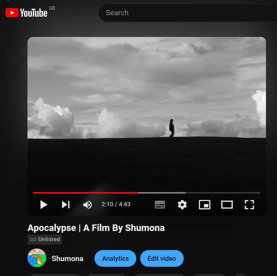 This film was also my classmates project. In this short film I am the main character and I wanted to take on this role so I could see how actors work around a camera and how it feels to be in front of the camera for once. I normally like directing myself, and working out the angles, where to shoot etc., but being in front of the camera gave me a whole new list of responsibilities and I realised how my perspective changed when acting. Now, when I am directing, or operating the camera I know how to talk to my actors and how to get the right shot.