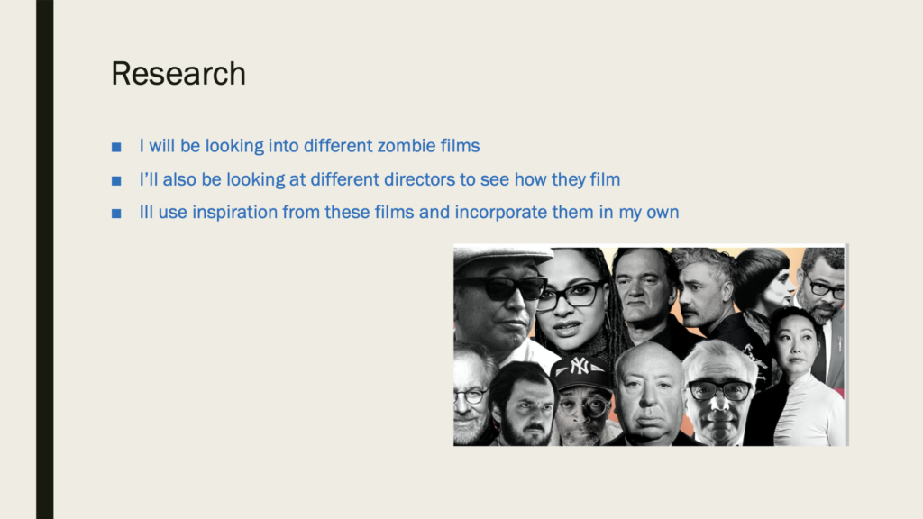I am going to be making a short film. It will be zombie/thriller film and be about 4-5 minutes long.