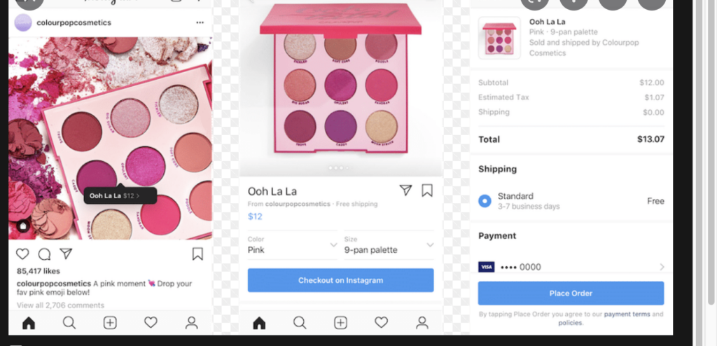 This is an instagram advert. It shows the product clearly and has a link to buy it. Customers can easily access this when they come across the advert. It shows them the price, tax and how long it will take to arrive.