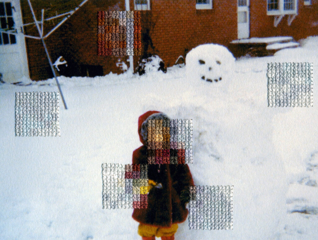 Diane Meyer is a Los Angeles based artist and photographer who is known for her unique approach to combining traditional and digital imagery through embroidery. She is most recognised for her embroidered photographs, which involve stitching directly onto photographs to create a pixelated effect. This is a technique which adds new textures and dimensions to her images and can be seen as a form of digital manipulation using physical means. She has participated in various exhibitions, including the exhibition ‘A Matter of Memories: Photography as Object in the Digital Age’.