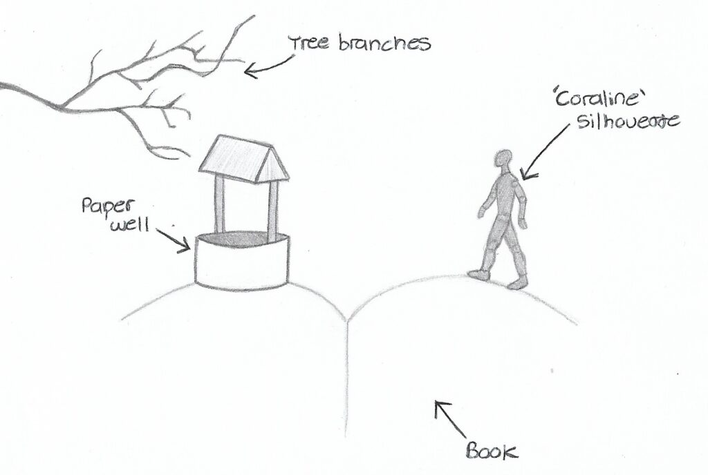 My plan is to create a small, simple well (one which Coraline comes across while she is exploring) out of paper and make it look like it is popping up out of a book. The things I will use to do this are a normal book, along with paper with the passage off the novel which has inspired this shoot printed on it.