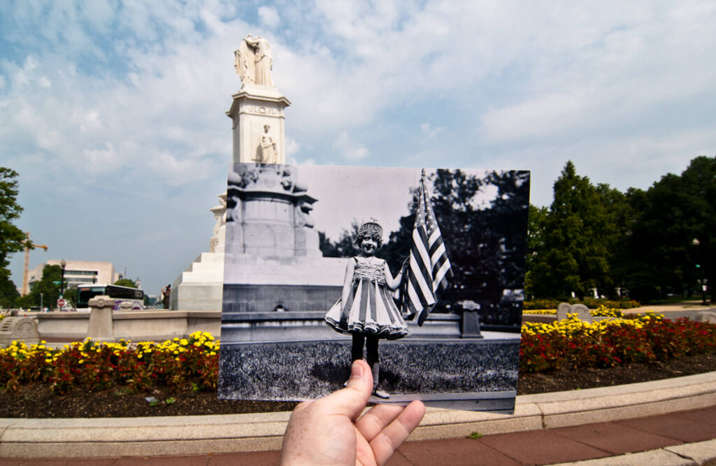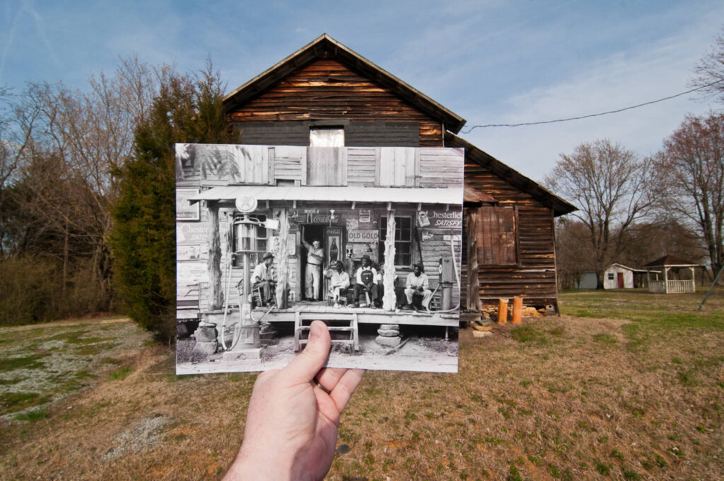 A photo essayist I find inspiring is Jason Powell. Beginning in Spring 2009, he undertook a project he called ‘Looking Into the Past’, where he found old photographs from the Library of Congress archives before printing them out to hold up and picture in the modern-day locations they were originally taken- from the same angles and distances. Powell’s series highlights the changes and developments of both urban and rural landscapes as time progresses, offering viewers a unique perspective on how places evolve. Many of his photos (and the old ones he used) are candid, featuring many average people going about their daily lives, while others capture moments during and the aftermath of historically important events. I chose to research this photographer first as he created composite (my chosen specialist practice) images, which juxtapose past and present, reflecting the idea of memories.