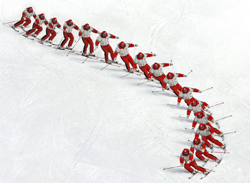This type of technique can be applied to pretty much anything or anyone that is moving as here there are some people doing a series of very large actions, including big jumps or travelling fairly large distances, such as the person skiing down a hill.