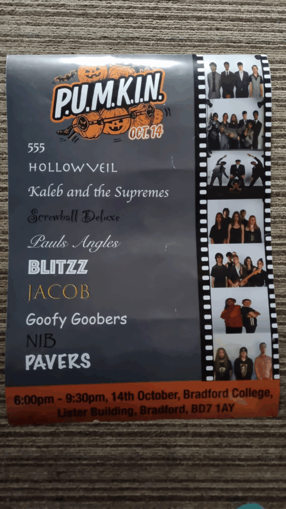 For band promotion I helped hand out loads of posters with photos of the musicians parting in the performance and the details of when and where. weirdly whoever made these posters forgot to add a QR code to scan which in my opinion makes a person less likely to grab a ticket due to laziness.