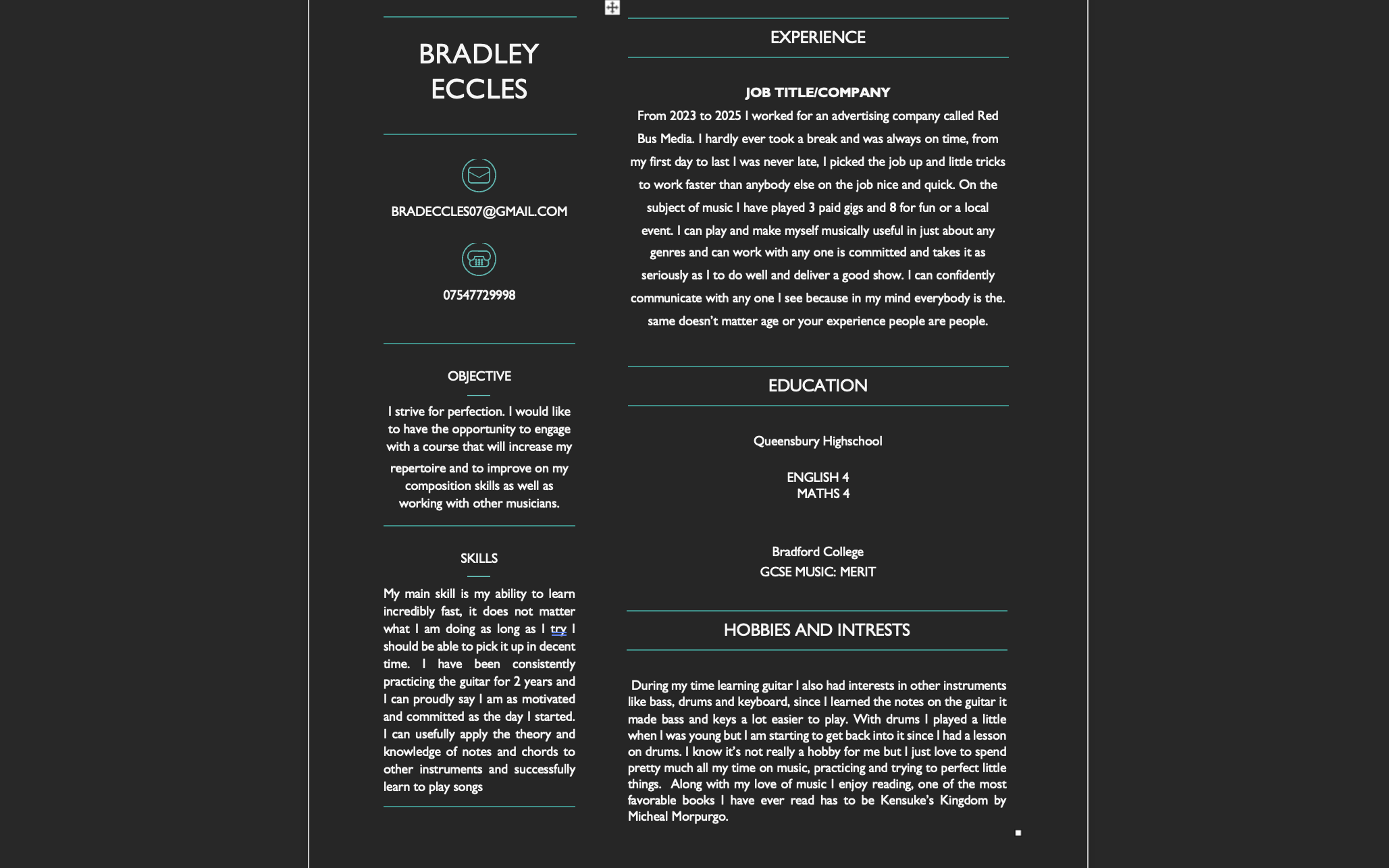 CV https://bradfordcollegeac-my.sharepoint.com/:w:/g/personal/10681461_bradfordcollege_ac_uk/IQD9kSZ1rzikQawk8FvyN9VHAdSJ9p4EOvVIidSay1N7ZhY?e=fcuVog