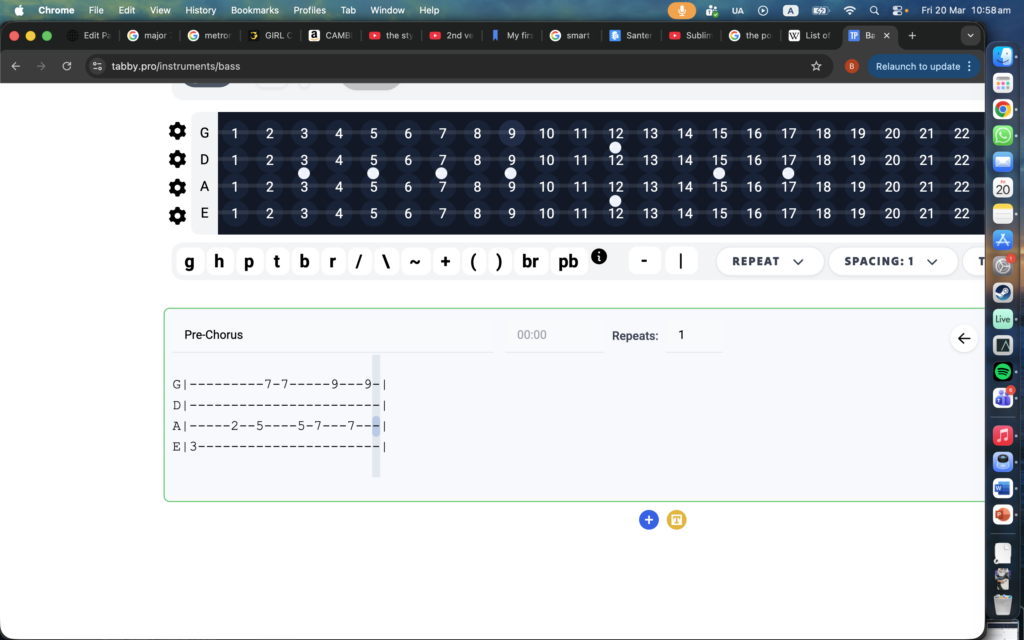 • Bminor, Emajor, Dmaj7 bridge/pre-chorus section