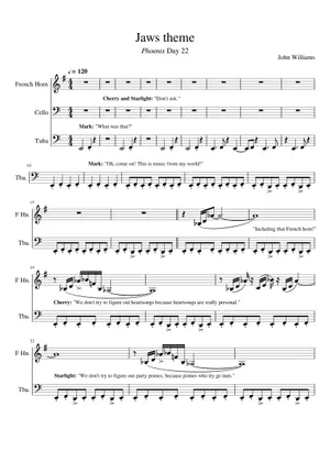 Jaws theme works really well as it feels like danger is coming like a heart beat getting faster as danger (the shark) is approaching. The instruments that are used also give it an ominous feel to it. There’s also a lot of tension that gets created by the slow deep duh du. At the start there’s only a couple of instruments playing then as the shark gets closer more join , it gets louder higher pitch and faster creating more fear and panic when the shark starts biting the dissonance happens.
