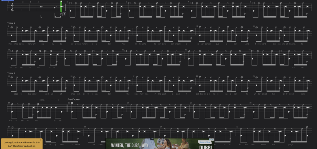 The Chelsea Dagger guitar part features
